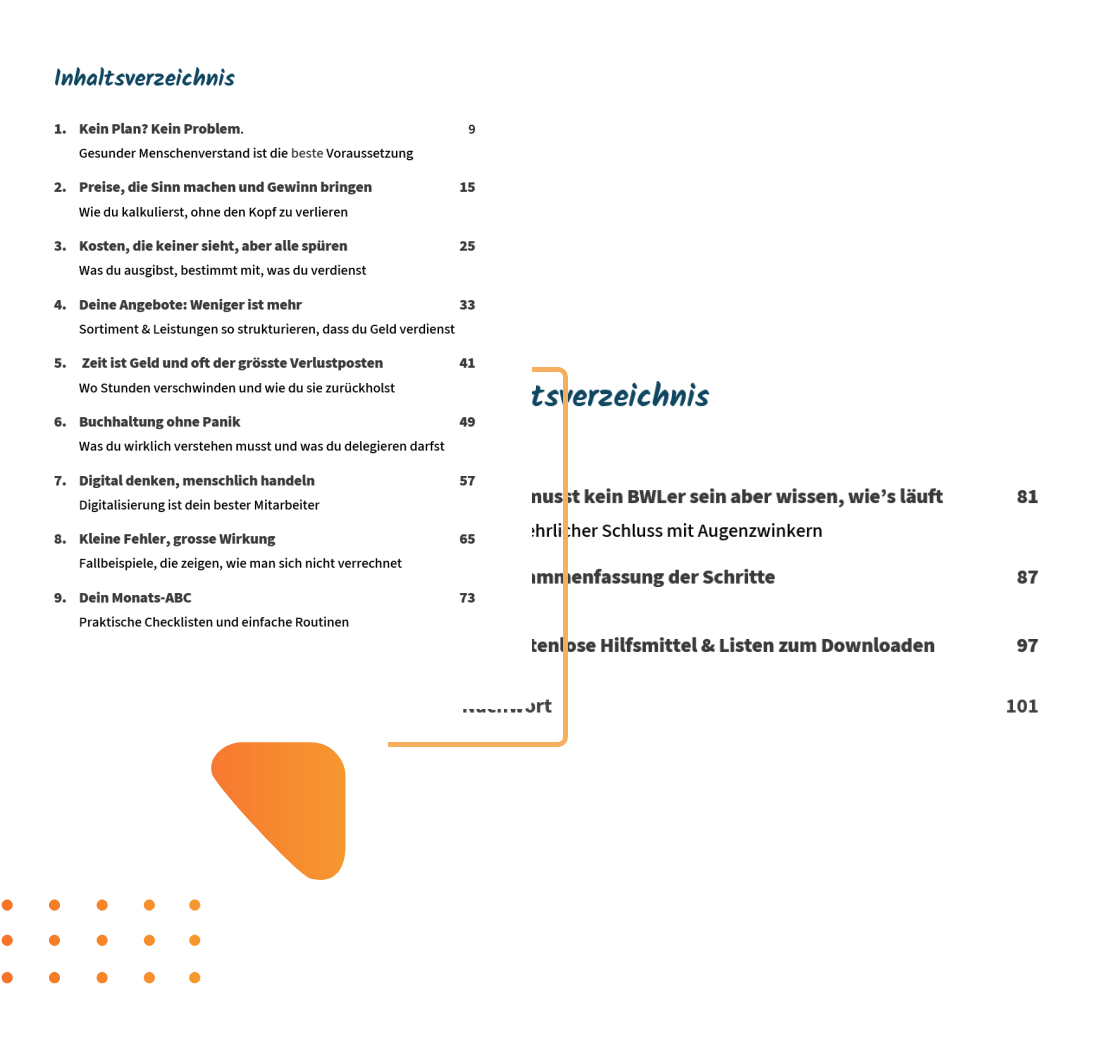 Genau deshalb ist es kurz, verständlich und direkt. Mit Praxishilfen, die dir zeigen, wie du dein Unternehmen erfolgreich führst.